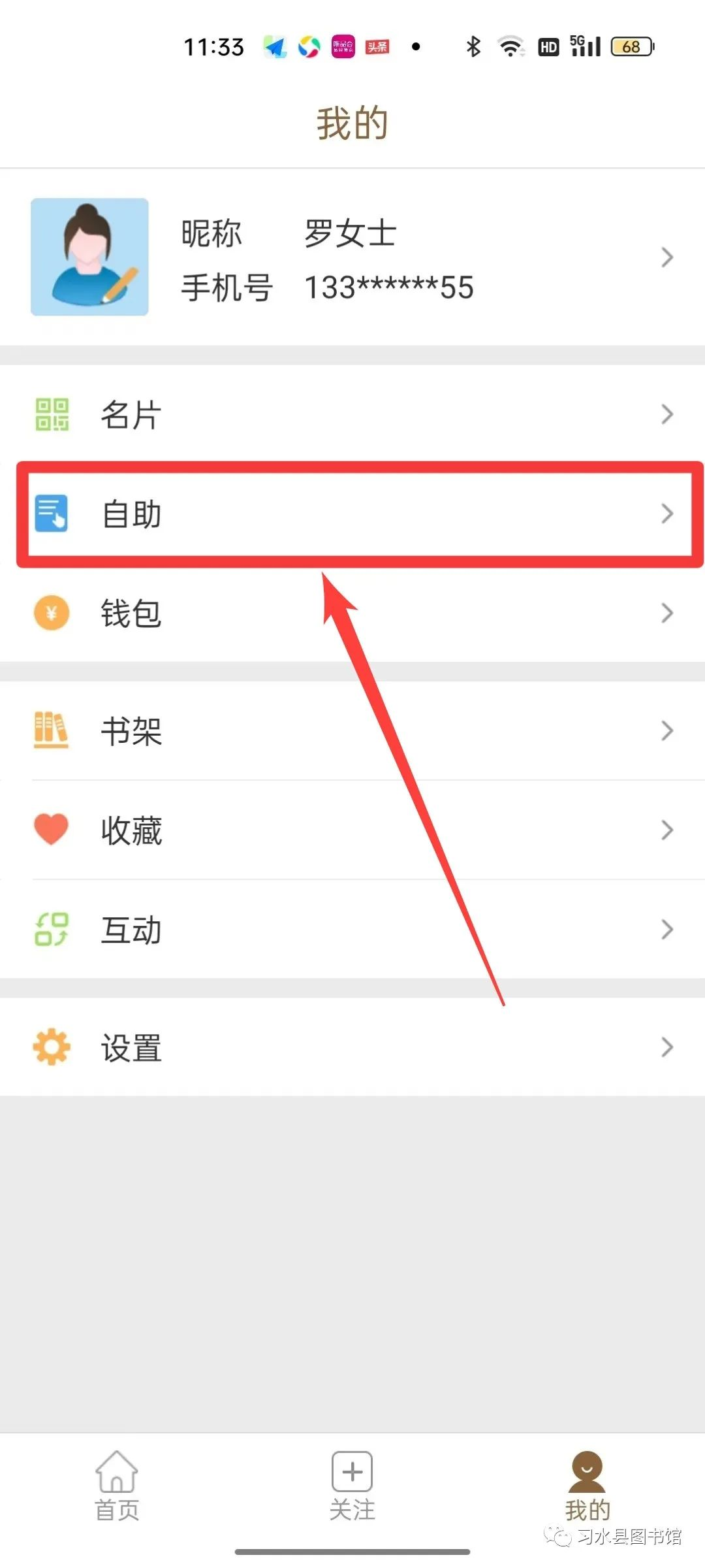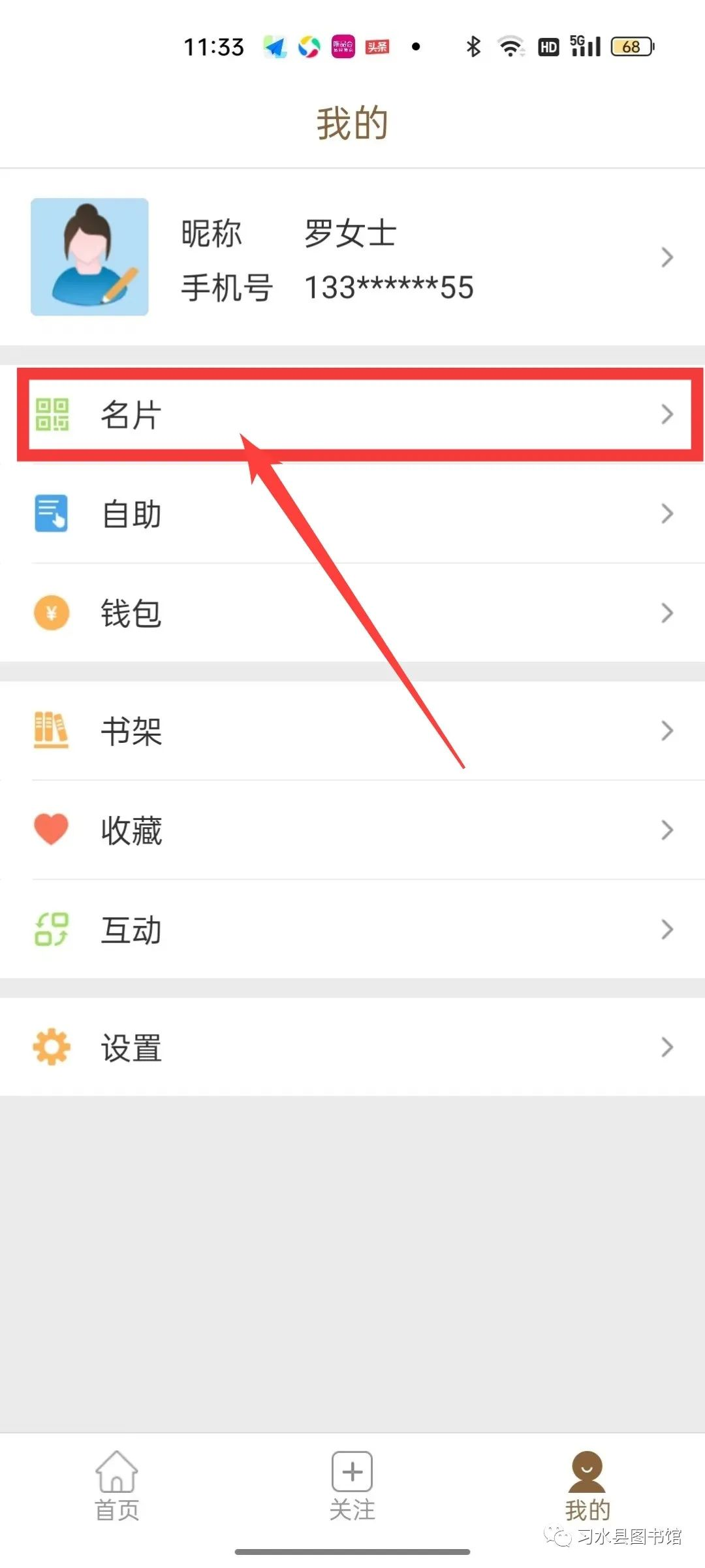 4.还可通过人脸识别借阅。进入跳蚤云图APP主页,点击“我的”→名片→ 录入个人头像,即可实现在图书馆自助借阅机上人脸识别借阅图书。